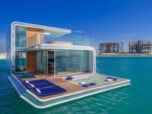 Each floating home spans approximately 4,000 square feet across three levels and accommodates up to eight guests. Rooftop terraces with jacuzzis, sea-level lounges, and underwater bedrooms overlooking coral gardens offer an unparalleled living experience.